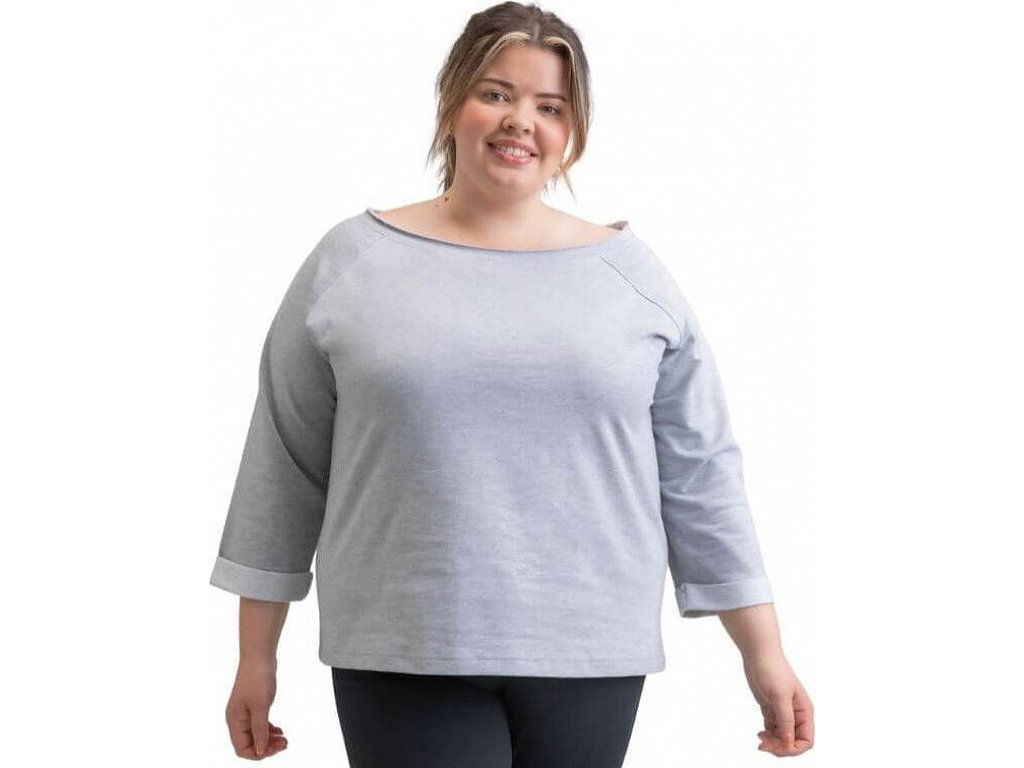 Volný oversize střih neomezuje pohyb a umožňuje vrstvení oblečení podle potřeby. Raglánové rukávy zakončené rovným lemem podporují pohodlí a dodávají mikině moderní vzhled. Díky tomuto střihu se hodí jak pro plnoštíhlé, tak pro běžné postavy. Výrazným a atraktivním prvkem je široký výstřih přes rameno.