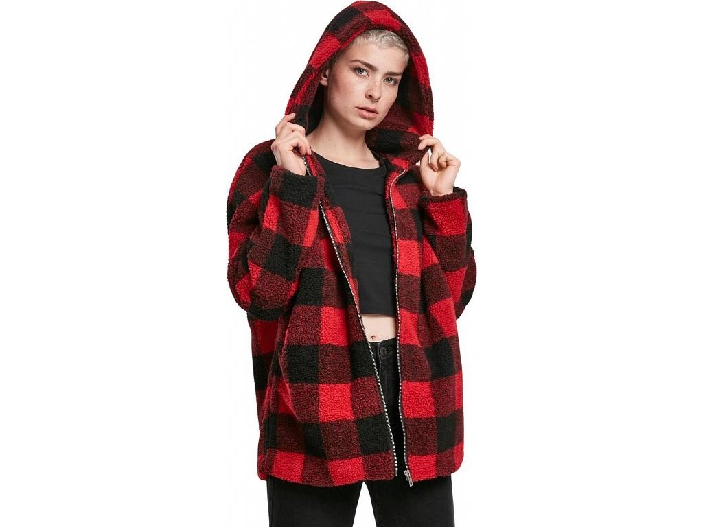 Dámská kostkovaná oversize bunda s vnitřním kožíškem