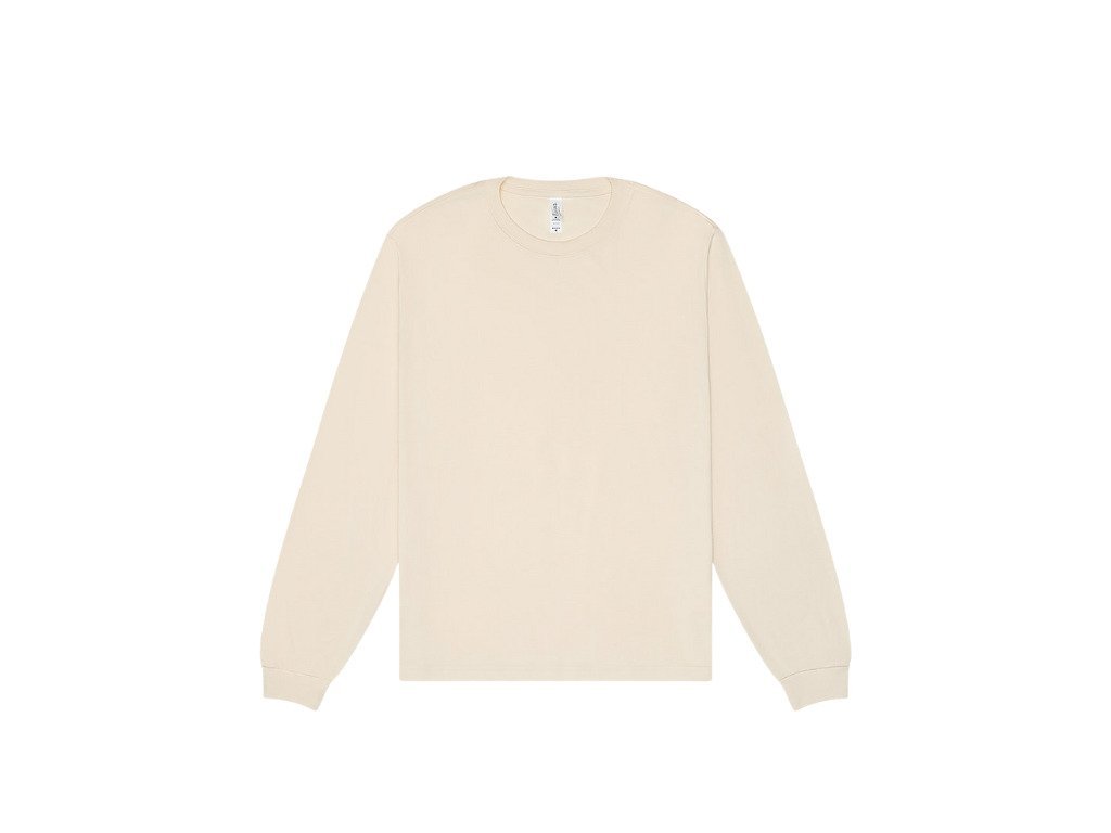 Konstrukce trička zahrnuje klasický rovný střih s postranními švy, které zajišťují optimální padnutí na různé typy postav. Dlouhé volné rukávy s manžetami a vsazeným střihem poskytují dostatek prostoru pro pohyb, aniž by omezovaly komfort. Kulatý klasický výstřih podtrhuje univerzální vzhled vhodný pro muže i ženy.
