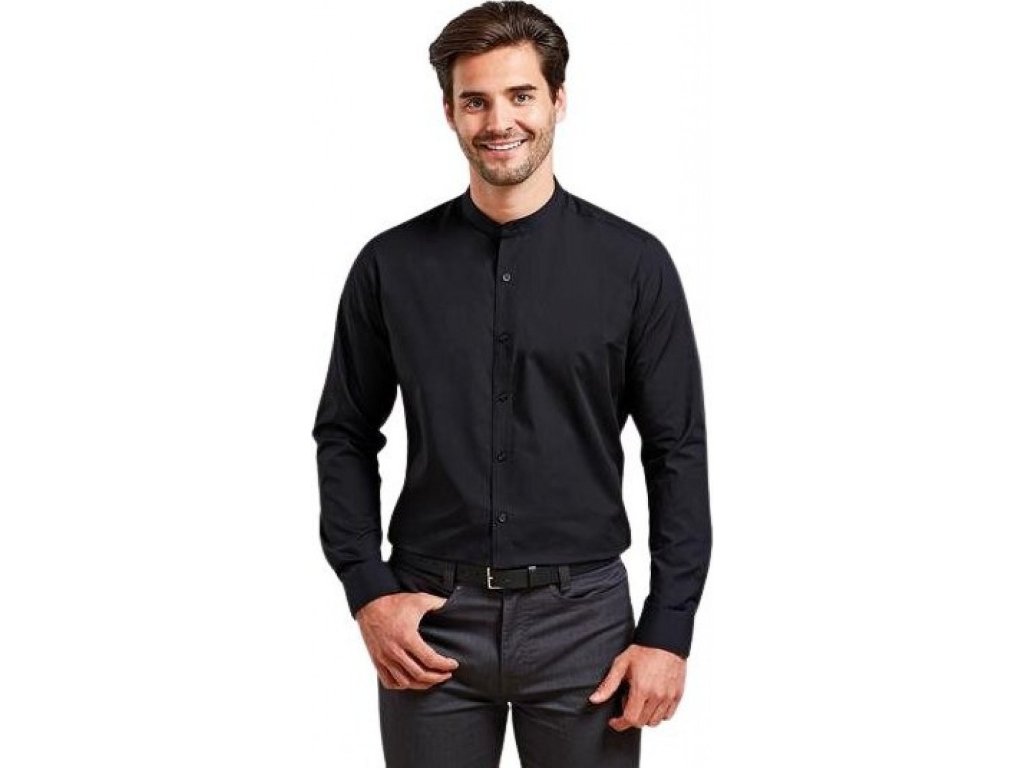 Pánská košile Grandad s dlouhým rukávem a pasovým límcem