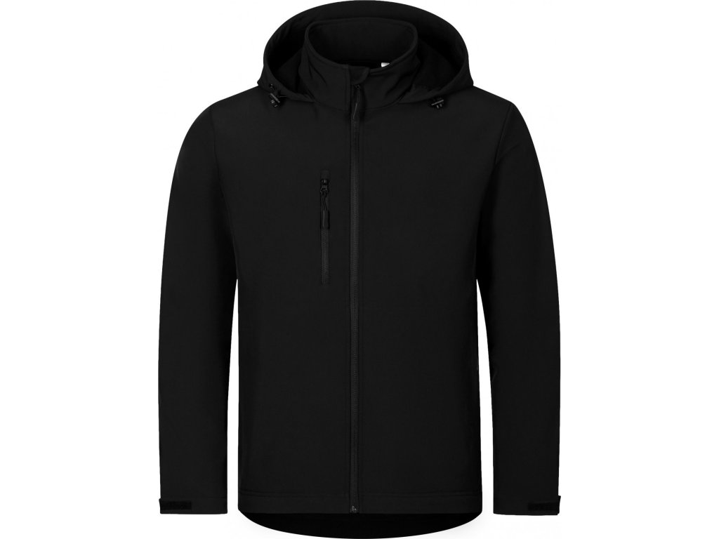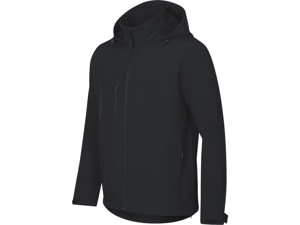 bez etikety - připraveno na rebranding, 2vrstvý softshell, rovný střih s bočními díly, celopropínací reverzní spirálový zip s krytkou brady, kapuce a dolní lem na stažení elastickou šňůrkou, neutrální velikostní štítek v boční části průkrčníku, lemy rukávů nastavitelné suchým zipem, kapsy s reverzním spirálovým zipem, náprsní kapsa, tvarovaný a mírně prodloužený zadní díl, vnitřní fleece s antipilingovou úpravou