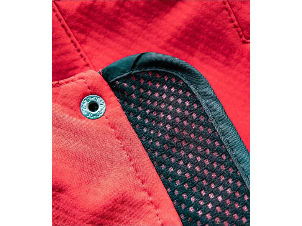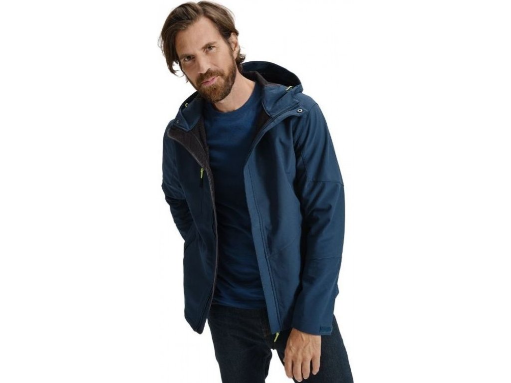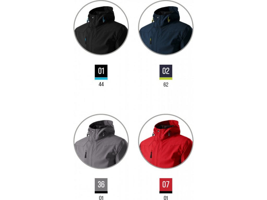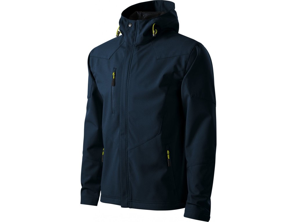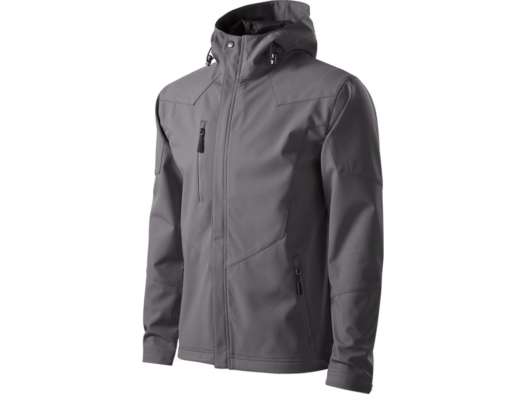 3vrstvý softshell s membránou, efektní textura softshellu, úprava Nanotex® zabraňující průniku vody, celopropínací spirálový zip s klopou, kapuce na stažení šňůrkou, kapuce a lemy rukávů nastavitelné suchým zipem, kapsy s reverzním spirálovým zipem, náprsní kapsa, tvarovaný a mírně prodloužený zadní díl, kontrastní prvky, Údržbové informace pro softshellový materiál