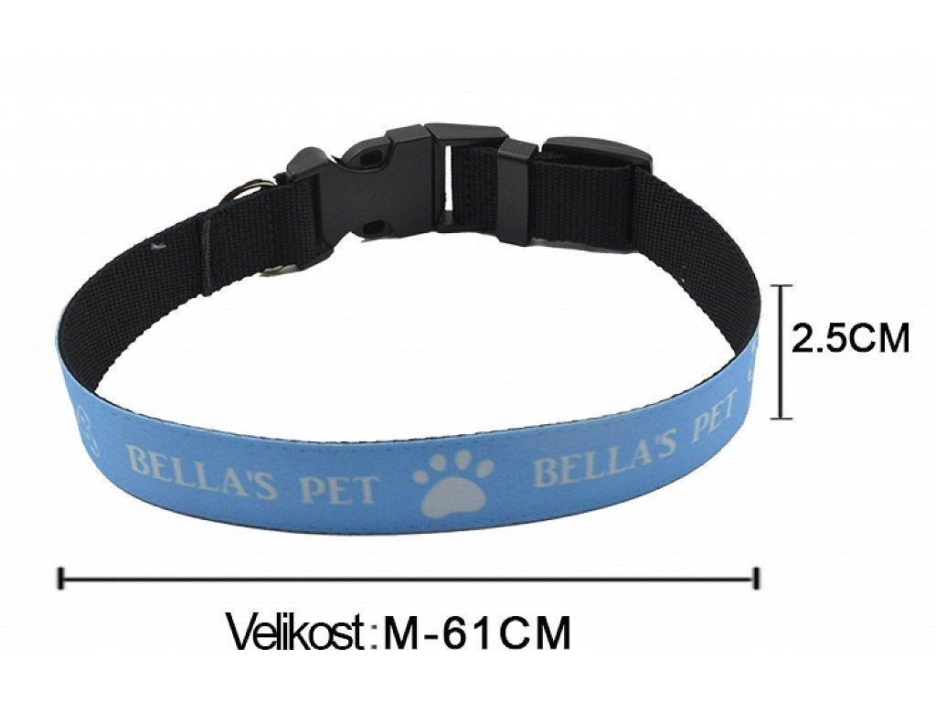 Nastavitelný psí obojek velikosti M (61 cm), s pevnou "click" sponou a Polyesterovým textilním pruhem k potisku.