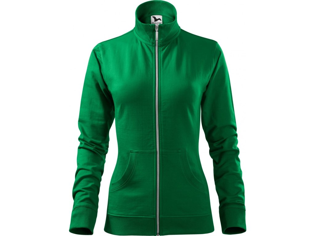 Dámská mikina se stojáčkem a spirálovým zipem, s příměsí elastanu zelená střední, vel. M