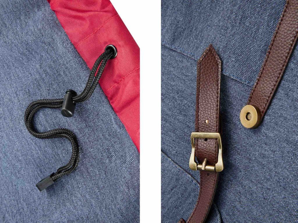Všechny kovové části a zipy mají vhled staré mosazi