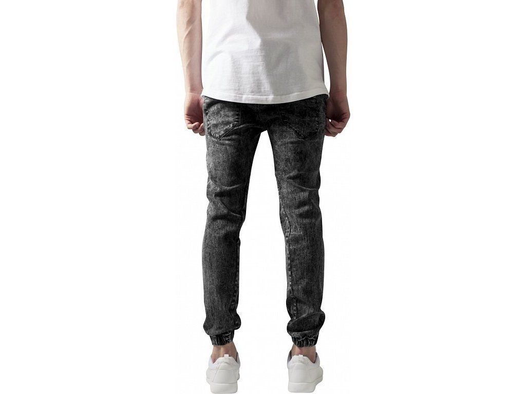 The stretch denim jogging pants in denim look has an elastic waistband, front pockets and patch pockets on the back. The casual fit as well as the stretch part guarantee a comfortable fit.
