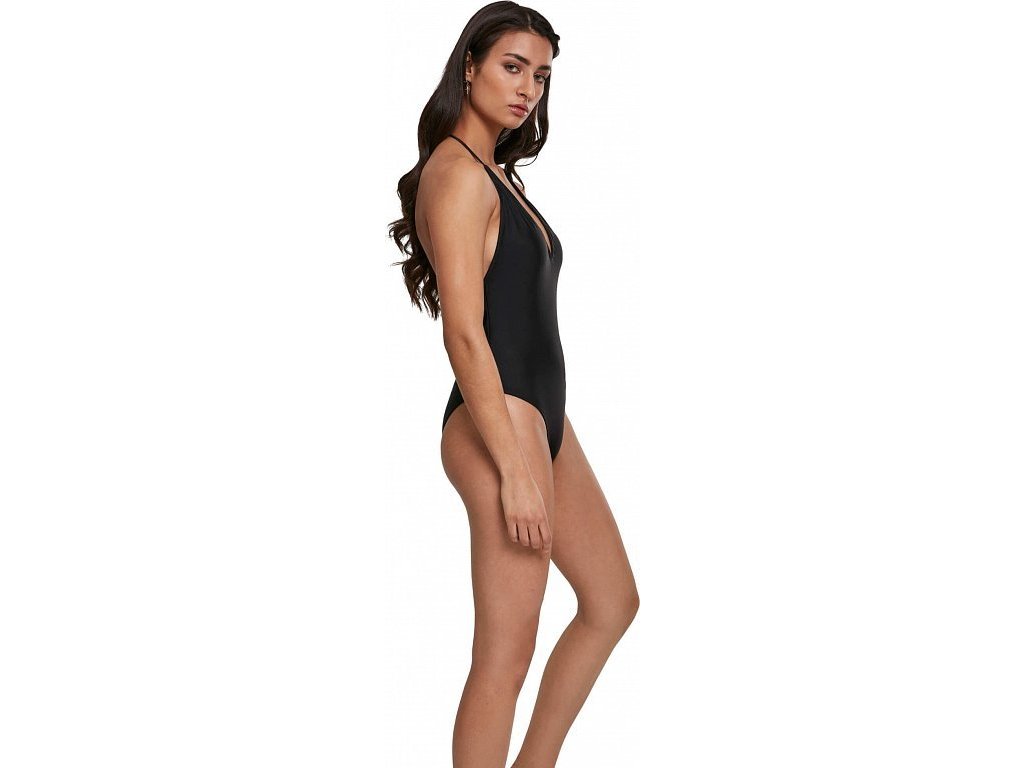 Tyto sexy plavky jsou jednodílné. Mají slušivý střih, který se perfektně přizpůsobí vaší postavě. O extravaganci se postará hluboký výstřih bez výztuže a také střih plavek na zadní části. Plavky mají odkrytá záda a nízký sed. Tyto trendy dámské plavky značky Urban Classics mají praktické zavazování za krk.