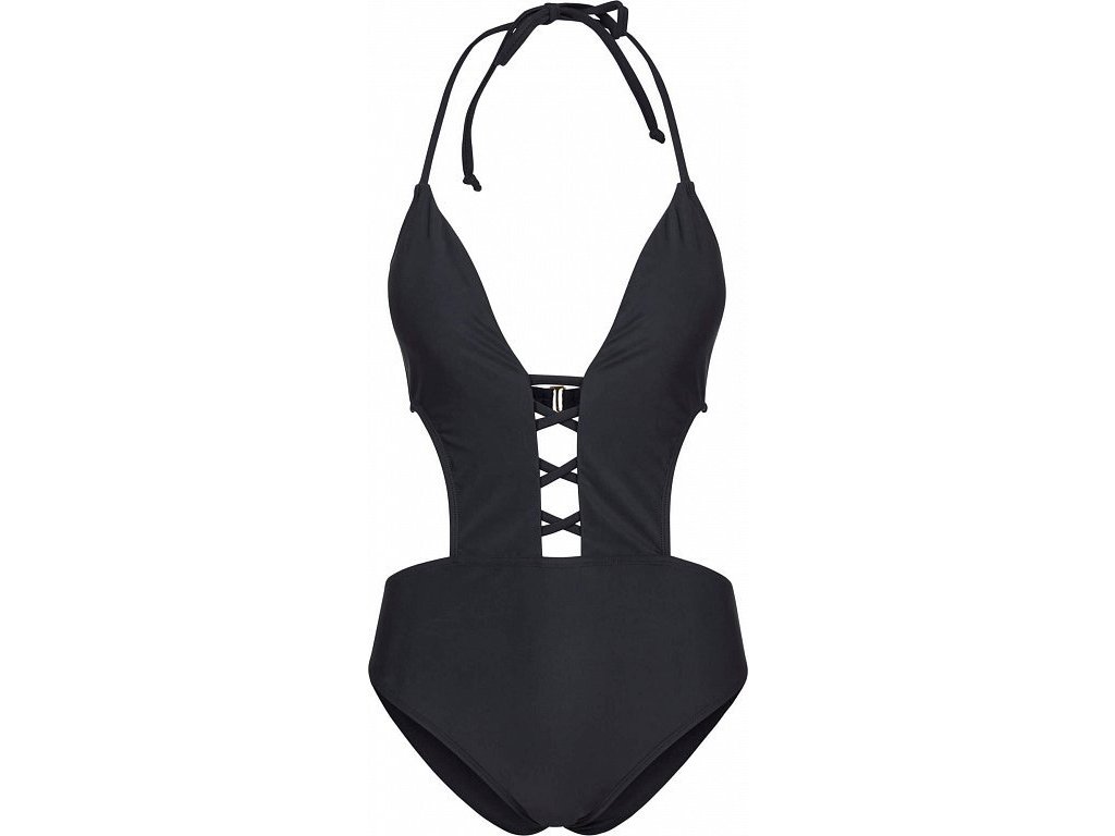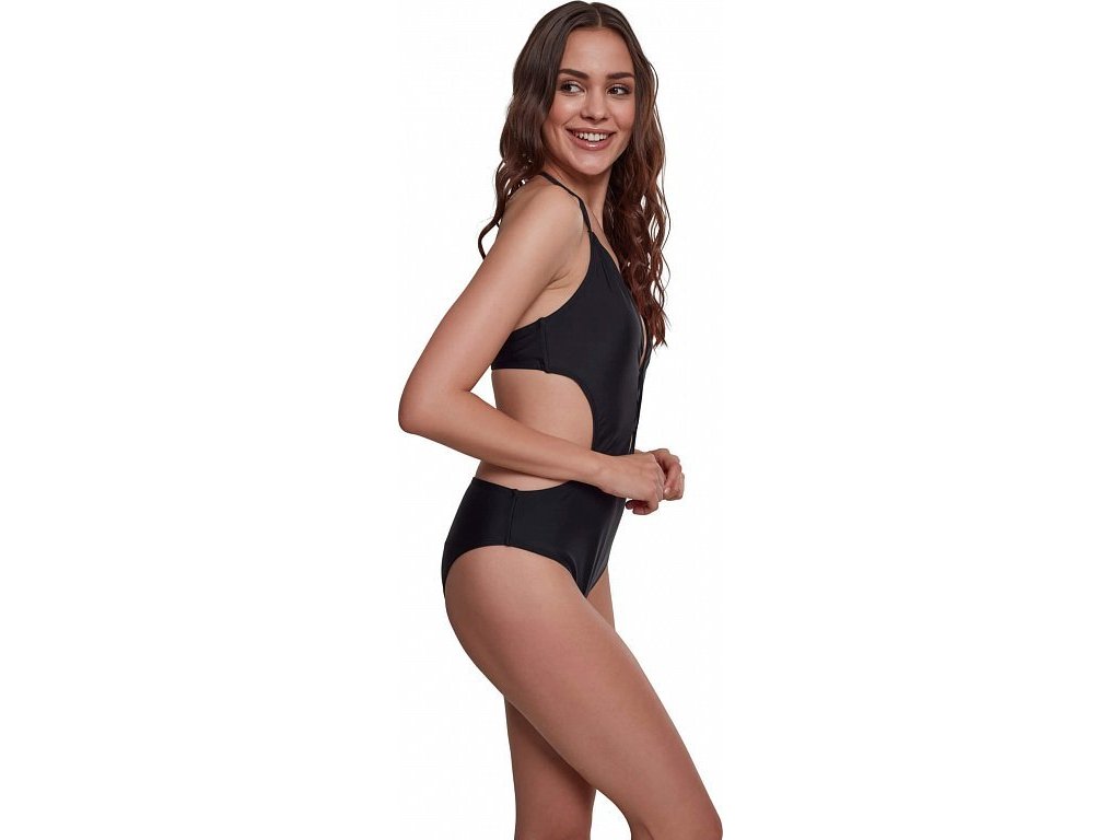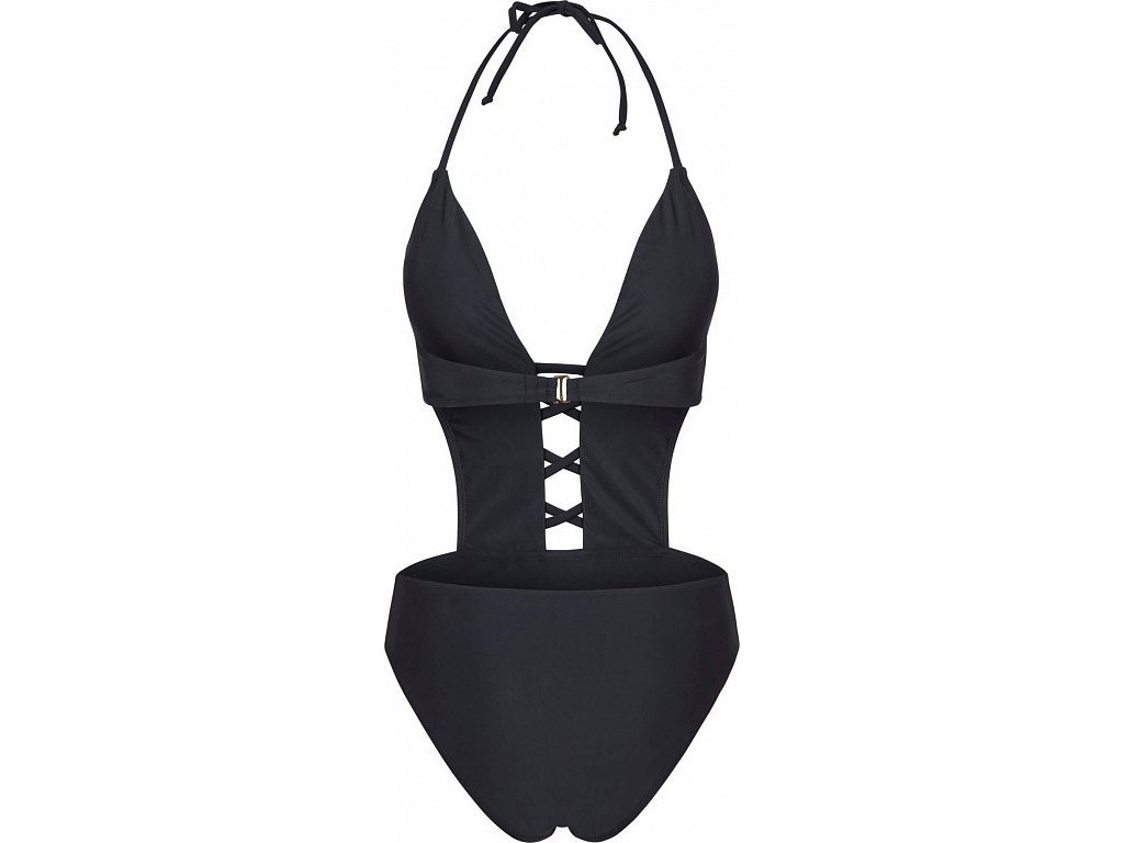 Střih na tělo (slim fit) podtrhne ženské křivky a zároveň poskytne potřebnou oporu v oblasti boků díky pevným postranním švům. Šňerování na bocích dodává plavkám originální vzhled a umožňuje mírnou regulaci šířky, což je praktické pro různé typy postav.